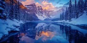 Stunning Winter Landscape Mountain Lake Reflection at Sunset