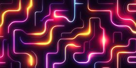 Glowing Neon Lines Abstract Purple Pink Orange Yellow Circuit B