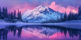 mountain landscape winter scene snow capped mountains lake reflection sunset pink sky purple sky evergreen trees serene peaceful nature photography mountain range winter wonderland cold weather beautiful scenery scenic view vibrant colors colorful sky nature background landscape photography travel destination mountain peak snow ice water reflection trees forest calm tranquil peaceful scene winter background amazing view natural beauty outdoors environment scenic panorama vista pretty idyllic picturesqueSimilar Photos