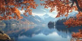 autumn lake mountains nature landscape scenery fall leaves trees reflection water peaceful tranquil serene calm vista scenic view photography image wallpaper background desktop screen seasonal color vibrant mountain range forest woods park outdoor environment travel adventure scenic view natural beauty autumn leaves mountain lake fall foliage panoramic digital art art artworkSimilar Photos