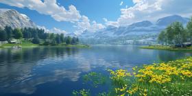 mountain lake landscape photography scenic view nature photography mountain scenery lake reflection blue lake green trees yellow flowers wildflowers alpine lake mountain range clouds sky peaceful tranquil serene beautiful nature outdoor travel vacation panorama summer spring scenic idyllic picturesque vista viewpoint environment eco landscape natural beauty pretty amazing gorgeous breathtakingSimilar Photos