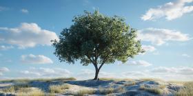 Solitary Tree Under a Blue Sky Peaceful Nature Scene