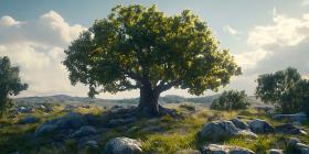 oak tree landscape nature tree sunlight rocks foliage green vibrant scenic panoramic view countryside peaceful tranquil calm serene background desktop artistic texture detailed summer daytime sky clouds hills grass field environment outdoor illustration digital art painting artwork photography graphics visual image picturesque majestic beauty wonderful amazing incredibleSimilar Photos