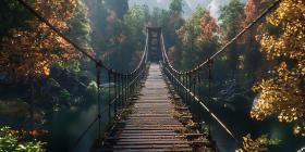 Enthralling Suspension Bridge Autumnal Forest Path