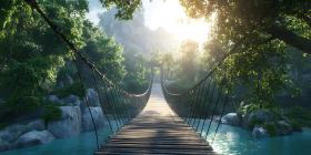 jungle bridge pathway river water nature scenic landscape tropical foliage trees sunlight sunbeams green blue stone rocks path walkway tranquil serene peaceful calm environment ecosystem adventure exploration journey travel vacation paradise escape digital art 3d render fantasy mystic magical artwork illustrative photorealistic unreal engineSimilar Photos