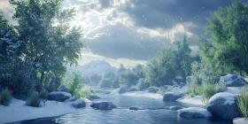 winter snow landscape nature scene serene peaceful stream river trees evergreen forest mountain snowy cold winter wonderland snowfall sunlight clouds sky outdoors environment background texture calm tranquil scenic view winter scene cold weather frost ice rocks mountainous snowy landscape winter background nature scene beautiful idyllic christmas holidaySimilar Photos