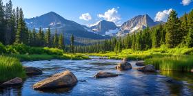 Mountain River Landscape Scenic View of Crystal Clear Water Maj
