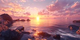 sunset ocean seascape pink clouds golden hour sky water rocks landscape nature scenic beautiful view panorama horizon peaceful calm serene tranquil twilight evening sunrise coastal beach rocks waves light colors vibrant amazing breathtaking pretty scene artwork art digital art illustration painting graphic design aesthetic visualSimilar Photos