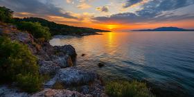 sunset seascape mediterranean coastline rocks ocean sea horizon sky clouds water landscape nature panorama scenic view travel vacation beautiful vibrant colors golden hour calm tranquil peaceful serene rocks vegetation plants sun reflection photography photo picturesque amazing natural beauty coastal summer evening twilight bright dramatic lightSimilar Photos