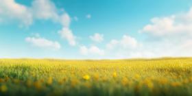 Serene Yellow Field Landscape Sunny Day Blue Sky and Golden Crop