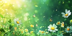 Vibrant Spring Meadow Sunlit Daisies Bees