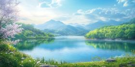 mountain lake spring landscape cherry blossoms nature scenery peaceful landscape tranquil scene mountain view lake reflection springtime blossom tree green mountains blue sky clouds digital art illustration serene calm peaceful scenic beautiful nature landscape environment outdoor travel tourism scenic view pretty idyllic vista panorama water reflection trees flowers spring summer artistic art painting digital painting mountain range lake mountainSimilar Photos