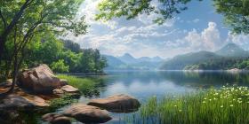 Serene Lakeside Vista Picturesque Mountain Landscape