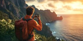 travel photography sunset coastal landscape ocean view cliffside adventure explorer traveler scenic view golden hour mountain range backpack person taking photo mobile photography landscape photography sea rocks nature photography vista horizon panorama dramatic sky vibrant colors serene peaceful calm sun clouds beautiful amazing awe inspiring spectacular explorer journey discovery vacation getaway destination explore travel photography view sceneSimilar Photos
