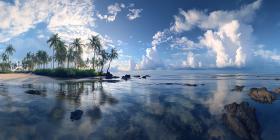 tropical beach palm trees ocean sea sky clouds reflection water calm serene paradise vacation travel landscape nature scenic beautiful peaceful tranquil relaxing tropical island shore coast horizon blue sky white clouds sun sunrise sunset beach scene panorama view tropical paradise idyllic escape getaway rest peace calmness tropical landscape tropical scenerySimilar Photos