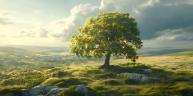 Serene Landscape Lone Tree on a Hilltop Overlooking a Verdant Va
