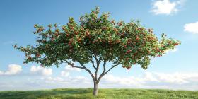 Lush Fruit Tree Under a Summer Sky Stunning Nature Photography