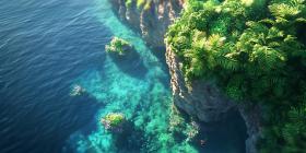 Stunning Aerial View of CrystalClear Ocean Lush Coastline