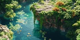 cenote jungle tropical paradise aerial view overhead shot water turquoise rocks cliffs vegetation lush green nature landscape environment eco wildlife birds-eye-view scenic beautiful amazing view travel adventure explore escape hidden gem secret place relaxation serenity calm peaceful vibrant crystal clear sunlight canopy aquatic tropical landscape natural wonderSimilar Photos