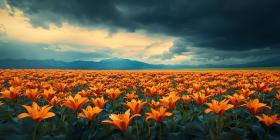 tulips flowers field orange sunset sky clouds stormy dramatic nature landscape spring bloom vibrant color beautiful scenic panoramic view photography artwork botanical flora dutch netherlands countryside rural scene backdrop background texture impressionistic powerful captivating inspiring serene peaceful tranquil outdoor travel holiday weatherSimilar Photos
