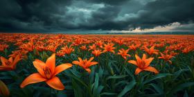 Fiery Orange Lilies Under a Dramatic Sky A Stunning Nature Photo
