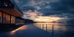 sunset waterfront architecture modern building clouds sky twilight evening seascape ocean coast horizon landscape design property real estate luxury home house balcony view panorama scenic serene calm peaceful tranquil vibrant colors golden hour dramatic lights reflection windows exterior night day dark bright contrast compositionSimilar Photos