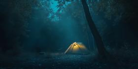 Enchanted Forest Camping Night Scene with Illuminated Tent