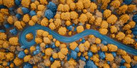 aerial autumn fall forest woods trees leaves golden yellow orange blue road path winding serpentine curve top view overhead view landscape nature scenic beautiful colorful vibrant color contrast texture pattern background design illustration artistic abstract art digital art photography drone map travel journey exploration fall colors autumn leavesSimilar Photos