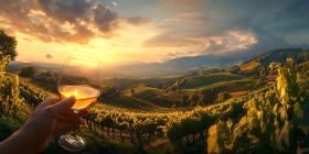 sunset cityscape landscape panoramic golden hour view hills vegetation sky colors tranquility travel nature scenic vista beautiful peaceful serene idyllic evening horizon sun light rays hand glass drink contemplation relaxation warm vibrant golden yellow orange red artistic painting digital art illustration amazing breathtaking photorealisticSimilar Photos