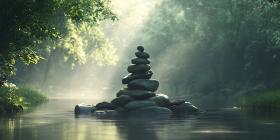 peaceful serene tranquil calm river forest woods trees nature zen meditation balance rocks stones stacked rocks cairn sunlight mist fog green leaves water reflection landscape scenic beautiful photography natural environment outdoors spiritual harmony yoga wellness mindfulness relaxation escape getaway journey peaceful scene tranquil setting nature photography scenic viewSimilar Photos