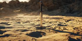 Epic Fantasy Sword in Desolate Landscape A Breathtaking Digital