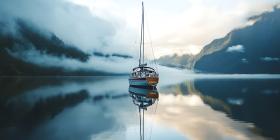 Serene Sailboat in Fjord Stunning Landscape Photography