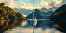 Scenic Sailboat in Mountain Fjord Stunning Landscape Photography