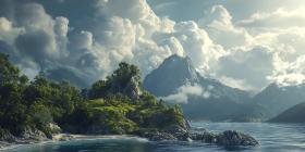 mountain landscape epic scenery dramatic clouds lush greenery island paradise tranquil water scenic view nature photography mountain range cloud formations beautiful scenery serene landscape peaceful scene green foliage water shoreline natural beauty vibrant colors amazing view breathtaking vista powerful scene scenic panorama landscape photography digital art fantasy landscape mountain peaks cloud cover sunlight ocean view coastal scene island scenery tropical landscape green hills blue water white clouds gray clouds art digital painting environment art concept art game art realistic illustrationSimilar Photos