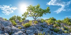 landscape nature tree sun sky clouds rocks green vibrant scenic view outdoor environment summer bright day photography beautiful serene peaceful idyllic flora foliage plant rock formation terrain texture contrast visual captivating natural vista sunshine bright sky clear sky rocky landscape lush greenery hillside hill scenic landscape outdoors nature photographySimilar Photos