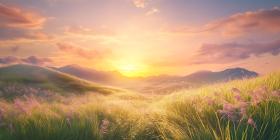 Serene Sunrise Over Rolling Hills and Wildflowers