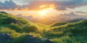 sunset hills landscape nature green golden hour panorama scenic view peaceful tranquil background wallpaper travel environment sky clouds mountains grass fields rural outdoor photography serene calm beauty horizon sun light rays vibrant color dreamy atmosphere scenic view natural beauty countrysideSimilar Photos