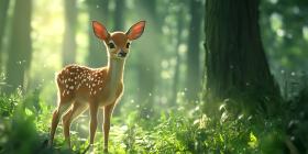 Fawn in Forest Majestic Deer in Sunlit Woods