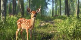 Fawn in Forest Majestic Deer in Lush Woodland Setting