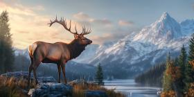 Majestic Elk in Winter Mountain Landscape A Stunning Nature Scen