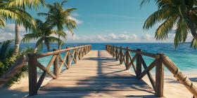 Tropical Beach Pier Sun Sand and Ocean Paradise Scenic Vista