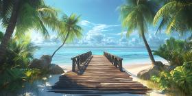 tropical beach ocean view wooden pier palm trees turquoise water paradise beach scene tropical paradise scenic view tranquil serene escape vacation travel holiday summer sun sky clouds digital art painting illustration artwork nature landscape seascape coastline tropical island calm sea bright sun lush greenery pathway wooden walkway tropical plants beautiful scenery scenic landscape relaxing peaceful getaway tropical background island getawaySimilar Photos