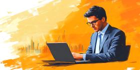 businessman laptop working professional success illustration painting orange background business technology computer entrepreneur employee office work career ambition determination focus concentrated effort achievement goal productivity efficiency corporate manager leader team strategy planning innovation digital modern stylish suit glasses desk workspace artistic impressionisticSimilar Photos