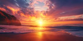 Vibrant Ocean Sunset Coastal Landscape Photography Beach Scene D