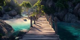 Tropical Paradise Wooden Pathway to Secluded Beach
