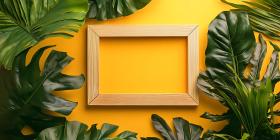 tropical leaves wooden frame yellow background mockup design branding announcement flat lay rustic summer plants foliage green nature texture background template presentation border frame mockup tropical leaf leaves golden sun bright vibrant photo image composition design template marketing advertising promotion visual media graphic design visual merchandising tropical plant minimalist simpleSimilar Photos