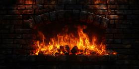 Fiery Embers Glowing in Brick Fireplace Warmth Comfort and Cozy