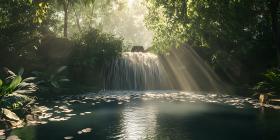 waterfall rainforest jungle nature landscape tropical sunlight sunbeams green leaves foliage trees water river pool rocks stones scenic beautiful serene peaceful calm tranquil paradise natural environment ecosystem photography travel adventure exploration hidden secret escape relaxation meditation zen peaceful scene lush greenery cascading water vibrant colors natural beauty outdoorSimilar Photos