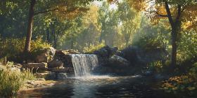 forest stream water nature landscape trees sunlight peaceful tranquil serene woods leaves golden hour scenic background environment eco natural photography outdoors vista view scenery calm relaxation meditation escape retreat wildlife habitat ecosystem green yellow light shadow park rural countryside botanical floraSimilar Photos
