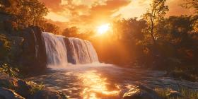 waterfall sunset nature golden hour landscape photography serene tranquil scenic water rocks greenery trees leaves sun sky light reflection peaceful calm beautiful amazing gorgeous vibrant colors orange yellow red natural environment outdoor view scene panorama pretty idyllic picturesque wonder marvel paradise harmony escape relaxationSimilar Photos